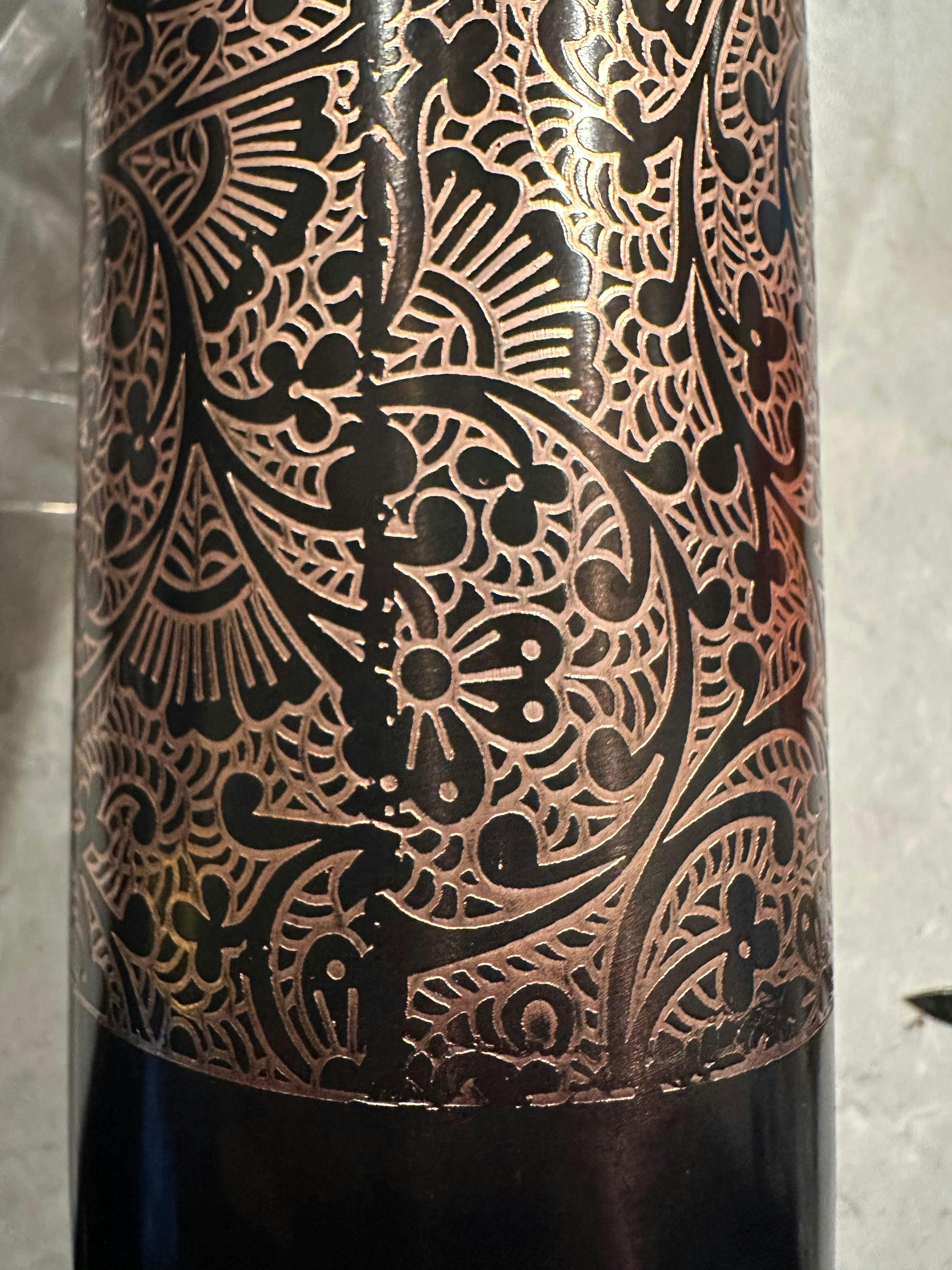 This stunning and classic design reminds us of the vibrant beauty and timeless wisdom of nature- the black Copper background makes this Clover Etch design really pop! The exterior is finished with a food grade lacquer to keep it shiny and new and prevent it from tarnishing. Perfect for those who love everything in black! (bare copper on the inside will tarnish, remove tarnish as needed per directions on the box and website)